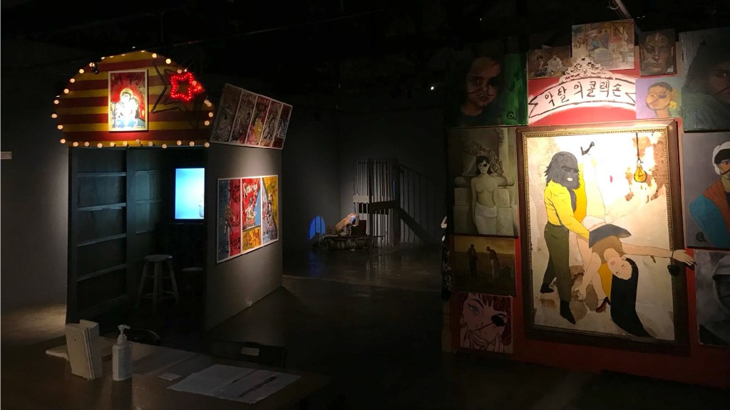 The Antagonist was a solo exhibition in which Park Chulho unraveled the layered complexities of his inner emotions, repressed memories, social roles, and structures of violence. Held at Space9, the exhibition took on a theatrical structure and a multidisciplinary form, weaving together scrap materials, discarded objects, fictional characters, video, installation, and performance into a singular narrative universe. Like a small theater, the exhibition unfolded in four scenes, each room functioning as a stage where Park’s personae emerged—confessional spaces where reality and fantasy intertwined.