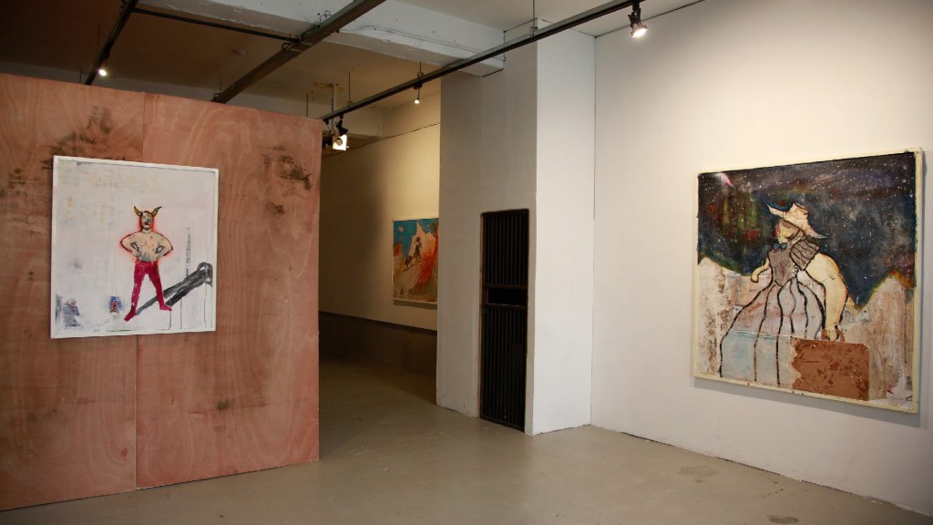 Scattered throughout the exhibition space were fragments of photographs and traces of real people from his childhood. These were layered with imagined characters and surreal events to construct a fictional village. As the story unfolded, it gradually revealed unsettling scenes—emotional violence, broken memories, and absurd relationships—through installations, paintings, and video works.