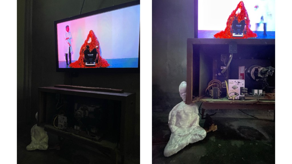 Throughout the exhibition, the Gregorian chants that Mozart famously transcribed by ear resounded in the background, weaving a sonic atmosphere of discipline and transgression. Park reassembled earlier installation works from Disruption along the museum’s long corridors, walls, and structures. Abandoned objects at the hallway’s end, light streaming in from ceiling gaps, and scattered symbolic elements throughout hinted at the intersection of sanctity and discard, faith and absurdity. Through this exhibition, Park constructed a theatrical stage from ‘wastes arranged for ritual,’ where discarded materials found new vitality. The result was a space that felt like a ceremony—where illusion and reality, sensation and symbol were in constant, disorienting play.