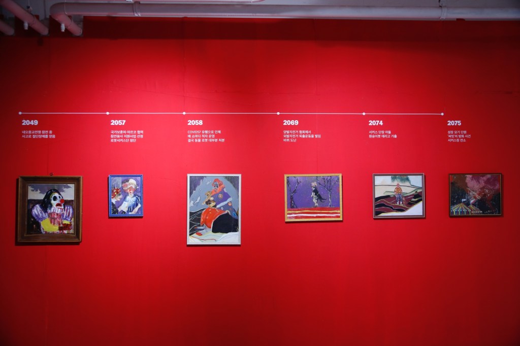 전시는 데즈카 오사무의 《철완 아톰》 ‘서커스’ 에피소드에서 영감을 받아 시작되었지만, 단지 오마주에 머물지 않고 동시대의 정동, 기술, 장애, 감정의 조건까지 포괄하는 복합적 구조로 전개된다. 특히 작가가 발달장애 예술가 김현우와의 만남을 통해 구성한 ‘로봇이 감정을 훈련하고 실수를 연기하는 서커스’라는 설정은 이번 서울 전시에서 더욱 깊이 있게 다뤄진다. 감정이 기술로 구성되고, 감동은 연출되며, 우울은 하나의 컨셉이 되는 세계. 여기에서 “넘어진다는 건 인간다운 거니까요”라는 대사는, 실수마저 연기해야 하는 로봇들의 아이러니한 정체성을 드러내며, 인간성의 조건을 되묻는다.